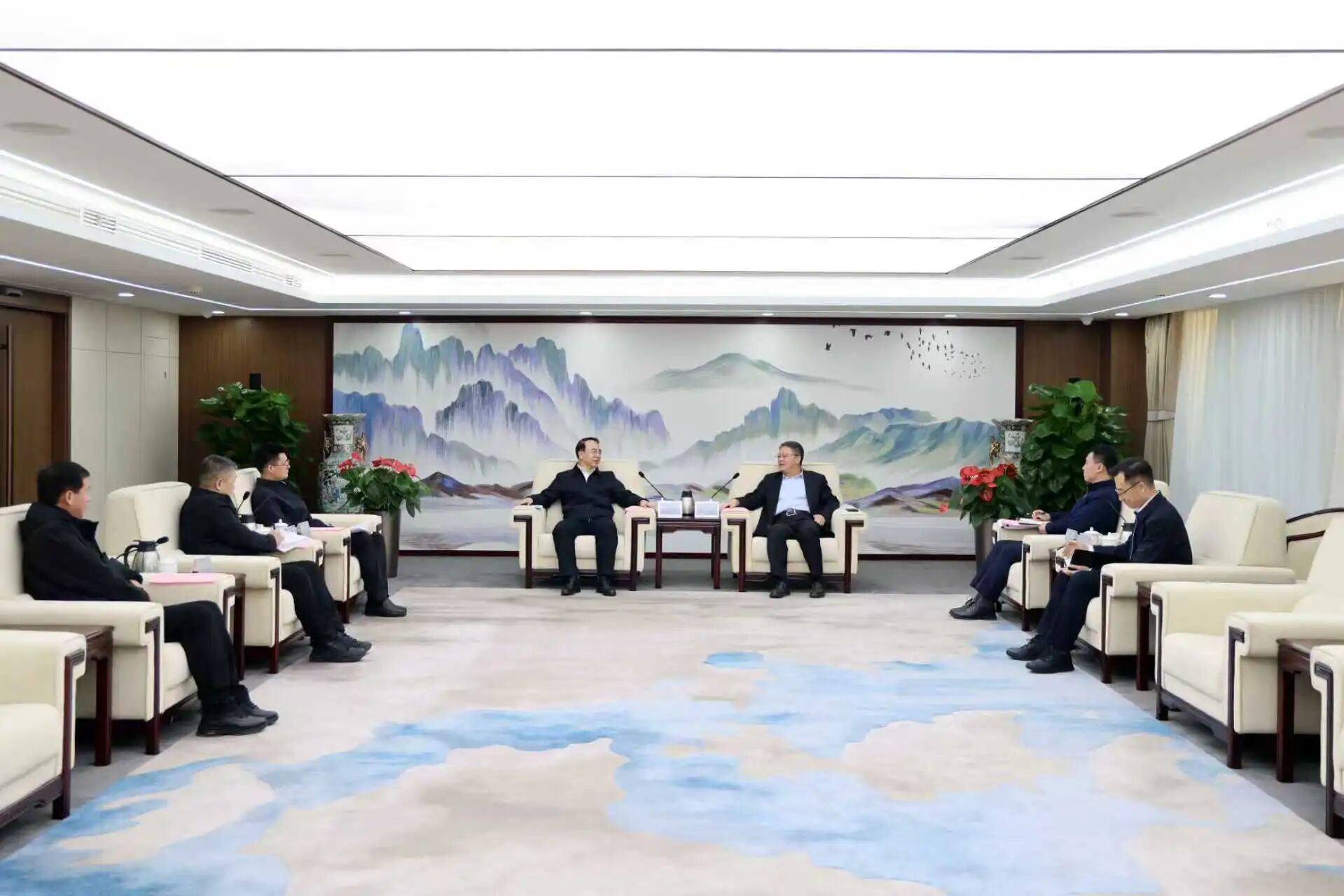 11月27日,中國中煤黨委書記、董事長王樹東在集團總部會見黑龍江省七臺河市委書記陳延良,雙方圍繞加強企地協(xié)同、拓展合作領域開展座談交流。七臺河市副市長雷東升參加會見。